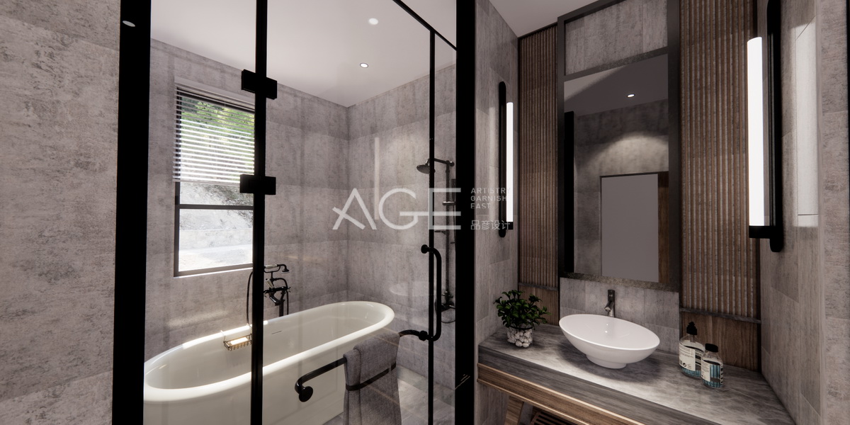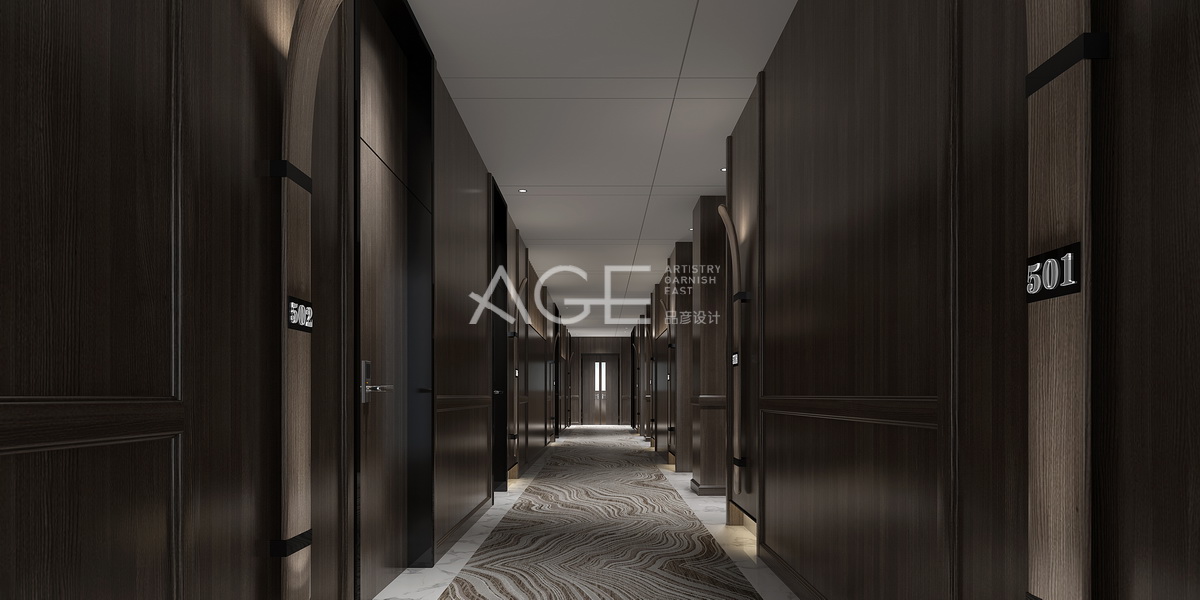 客房走道整體空間十分有層次感,左右墻體設(shè)計錯落有序,水紋的兩色大理石設(shè)計,使得地面空間有了差異的美,又與簡單一色的帶有線條的天花板形成相呼應(yīng)的美??头啃l(wèi)生間整體空間設(shè)計簡單大方,用落地玻璃門的設(shè)計,讓衛(wèi)生間空間更顯明朗和舒適,墻體、鏡面、玻璃門都是方形設(shè)計,而面盆和浴缸則采用了橢圓設(shè)計,這樣讓整體空間更有錯落的美。